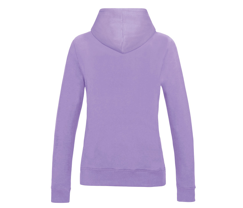 Sweat à capuche femme. Coupe féminine. Double coutures. Capuche doublée. Cordons ton sur ton. Poche kangourou. Taille et poignets en bords côte. Intérieur brossé. Étiquette détachable.