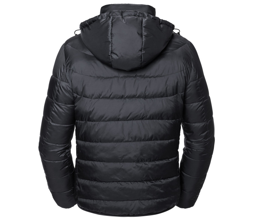 Tissu DWR haute performance traité avec Aquapel de Nanotex®. Sans fluor ni PFC. Rembourrage éco-responsable efficace de Dupont™ Sorona®. Col montant avec protège-menton et rabat-tempête intérieur. Fermetures éclair, doublure et détails contrastés. 2 poches latérales et 1 poche intérieure zippée. Cordon élastique aux manches et à l'ourlet. Capuche amovible réglable en 3 parties. Accès intérieur discret pour décoration au niveau de la poitrine gauche.