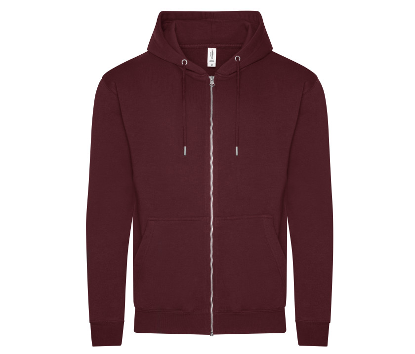 Sweat-shirt zippé à capuche. Fermeture Éclair YKK métallique couverte. Double couture. Capuche doublée avec cordons de serrage ton sur ton. Poches kangourou. Intérieur brossé. Étiquette détachable. Taille et poignets en bords côte. Surface douce pour un rendu d'impression idéal. Usine et fil certifiés.