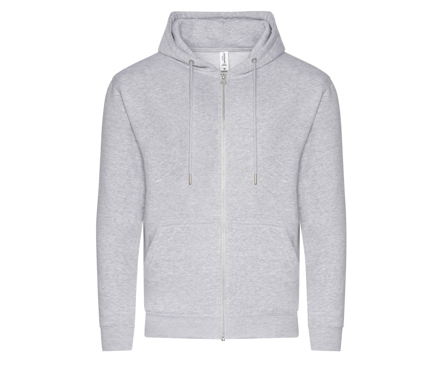 Sweat-shirt zippé à capuche. Fermeture Éclair YKK métallique couverte. Double couture. Capuche doublée avec cordons de serrage ton sur ton. Poches kangourou. Intérieur brossé. Étiquette détachable. Taille et poignets en bords côte. Surface douce pour un rendu d'impression idéal. Usine et fil certifiés.