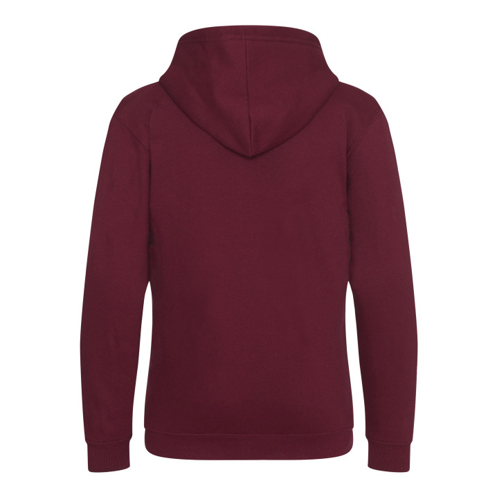 Grand zip. Zip invisible. Capuche doublée. 2 poches frontales. Poignets et ourlet en bords côte. Étiquette détachable. Intérieur brossé.