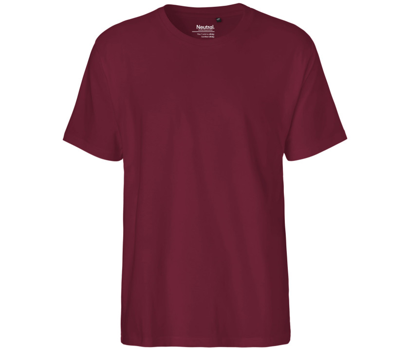 Tee-shirt en coton bio. Maille jersey. Coupe classique. Col rond. Bande de propreté au col. Certifié Fairtrade, EU Ecolabel, SA8000 et Oekotex. Produit avec de l'énergie éolienne.