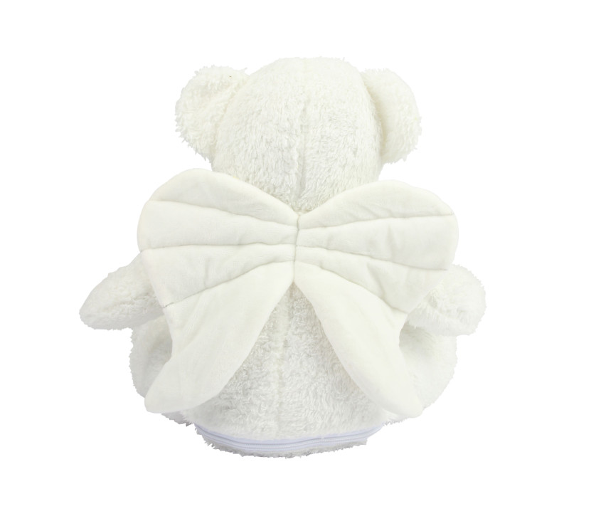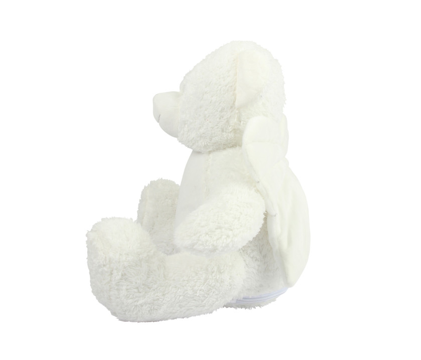 Marquage possible sur le ventre de la peluche. Ouverture zippée sur l'arrière. Possibilité de retirer le rembourrage.