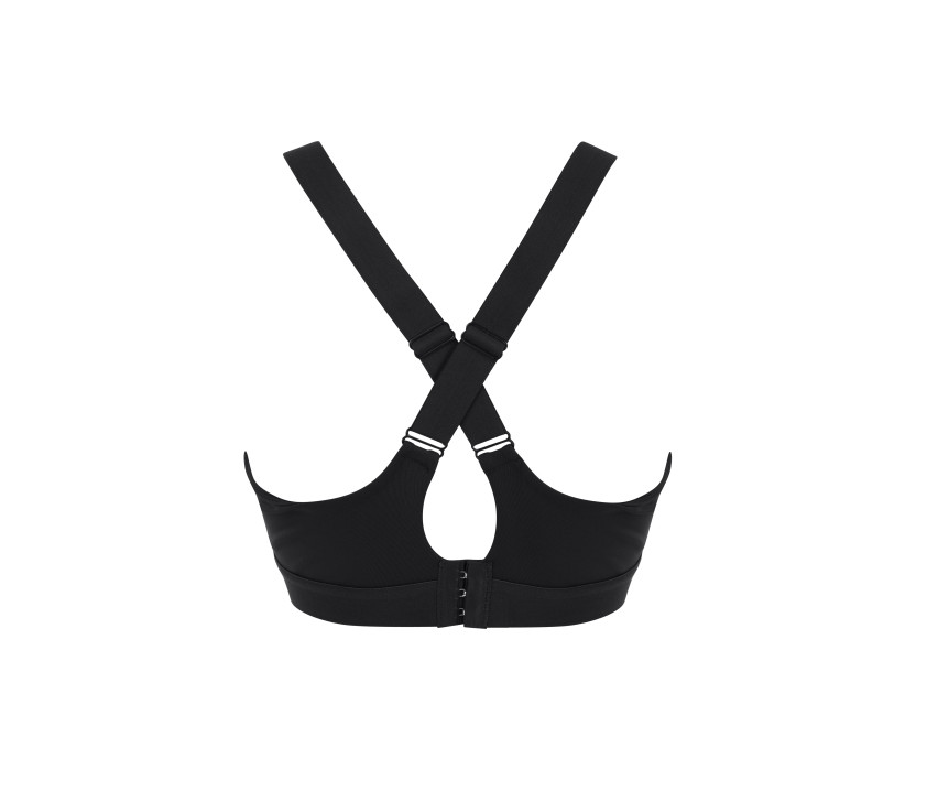 Brassière de sport - Support : moyen. Taille élastiquée. Bretelles croisées et élastiquées dans le dos. Fermeture métallique dans le dos.