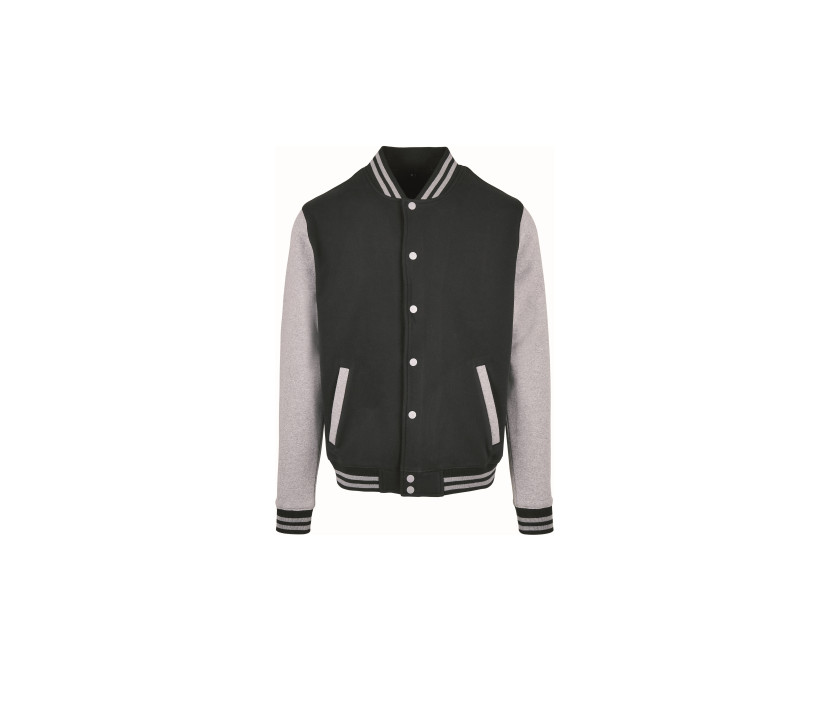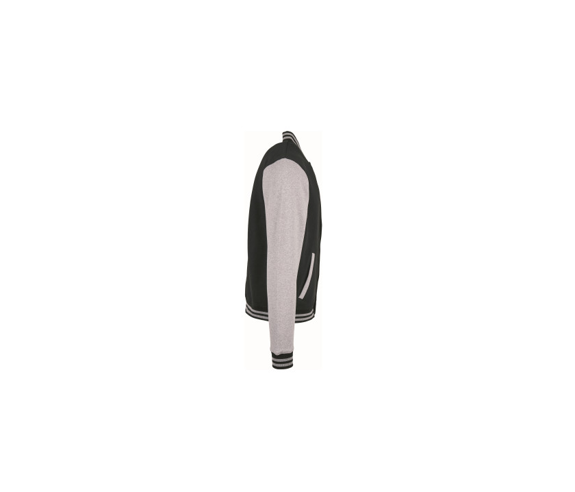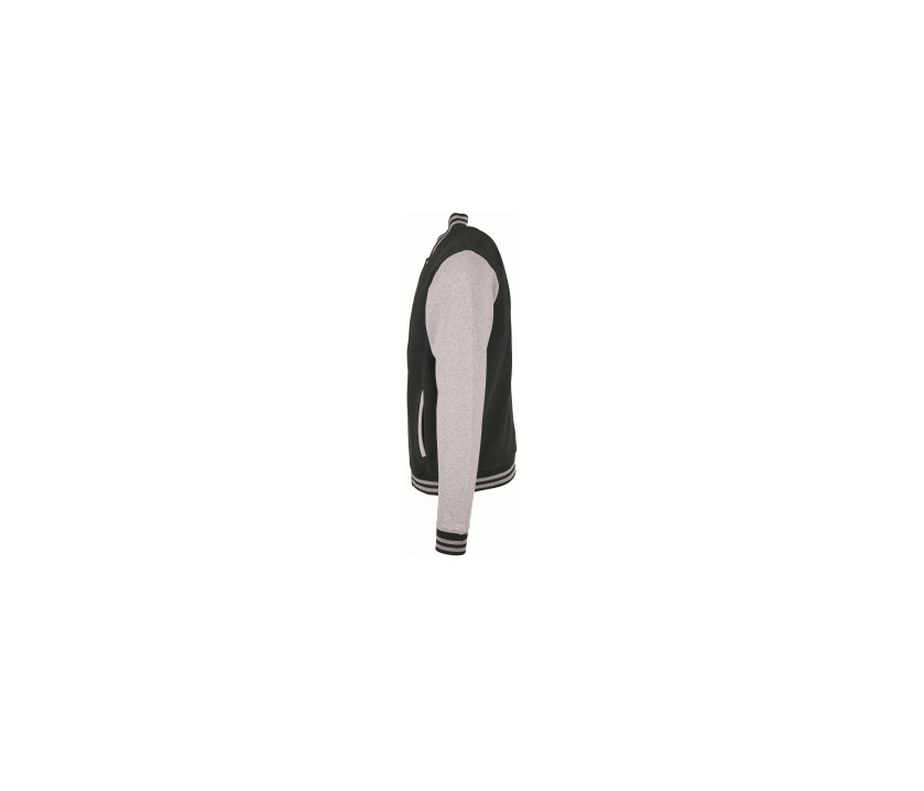 Fermeture par boutons pression blancs. Manches droites et contrastées. Col, taille et poignets en bords côte avec bandes contrastées.