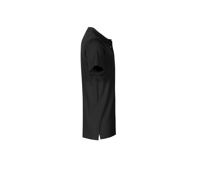 Maille jersey. Plaquette 3 boutons ton sur ton. Sans étiquette de marque. Fentes latérales. Coupe moderne. Lavable à 60°C. Pré-rétréci.