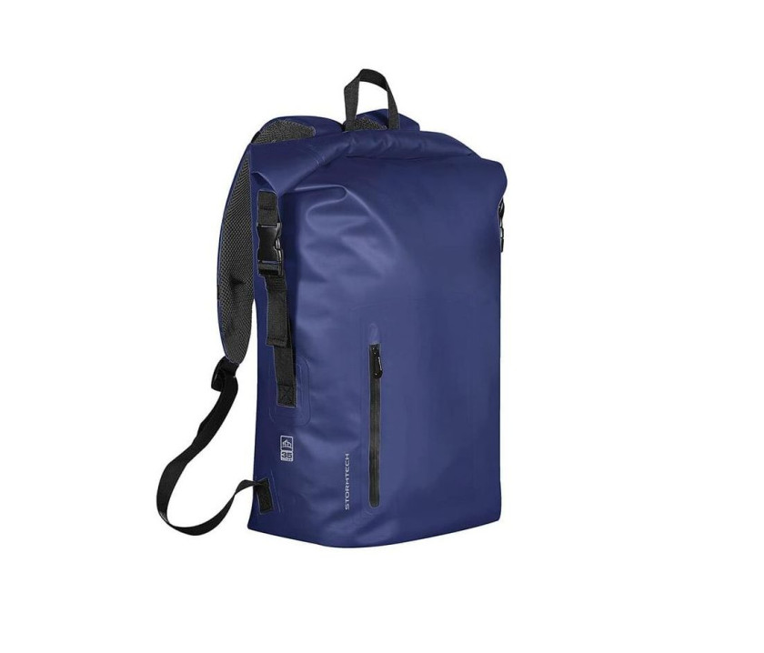 Coutures soudées. Tissu 100% étanche. Fermetures 100% étanches. Tissus PVC léger renforcé. Fermeture à enroulement avec sangles. Bretelles ajustables et renforcées. Large poche zippée.