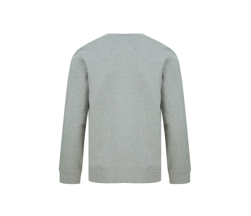 Coutures épaules orientées vers l'avant. Intérieur gratté. Poignets et taille en bords côte. Manches droites. Couple classique. Col rond avec empiècement V côtelé.