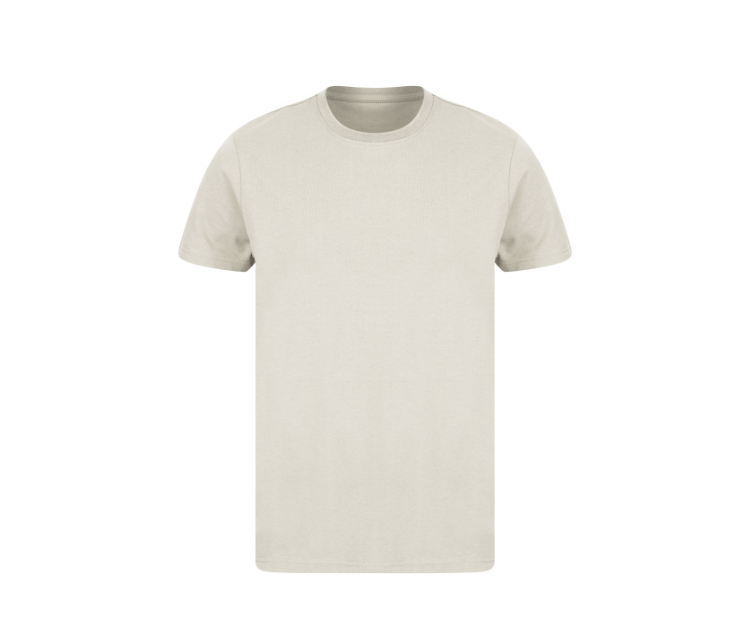 Tee-shirt unisexe en coton régénéré et en polyester recyclé - Coupe mixte décontractée. Manches droites et épaules tombantes. Col en bords côte.
