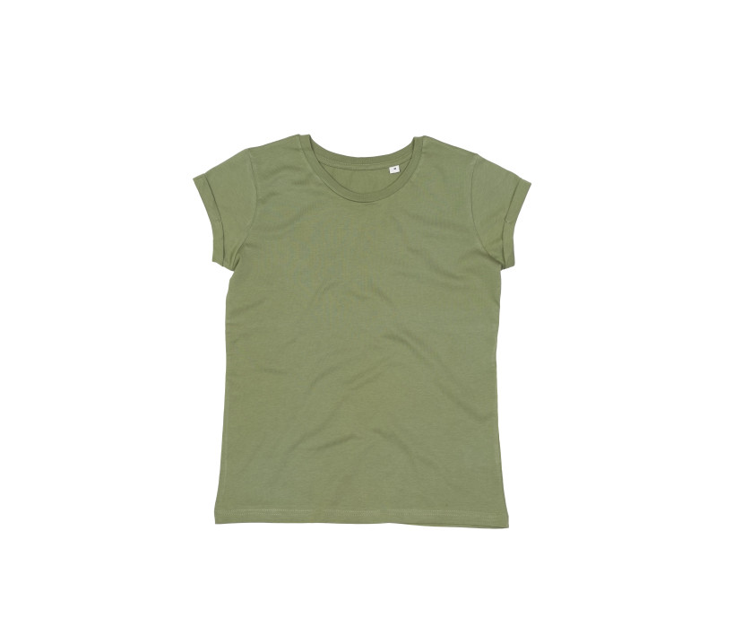 Tee-shirt femme manches roulées - Coupe moderne. Manches enroulées avec brides de fixation. Col fin en bords côte.
