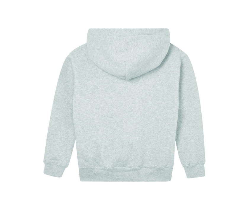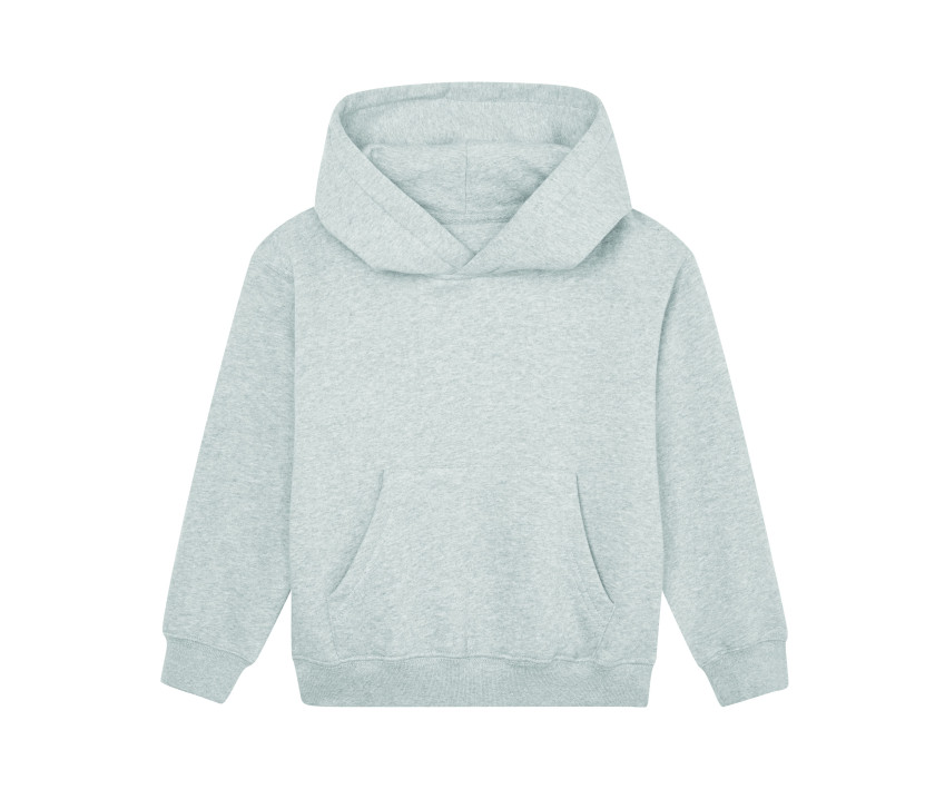 Coupe unisexe. Capuche doublée. Manches montées. Bande de propreté ton sur ton au col. Poche kangourou. Etiquette en coton bio.