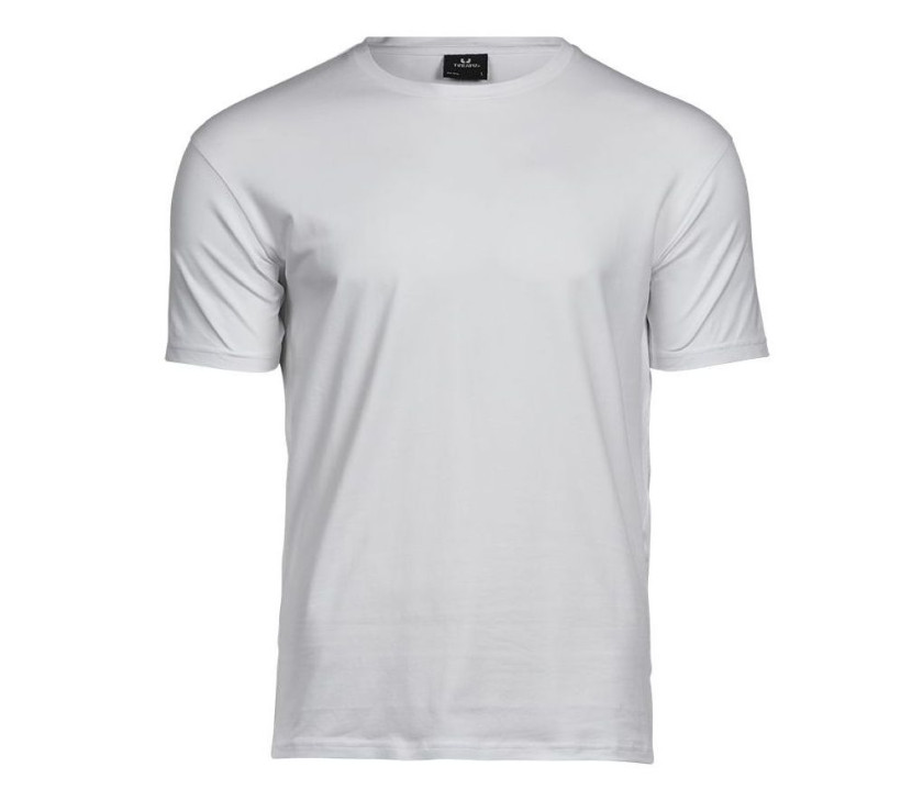 Coupe classique. Col en bords côte doublé. Double couture. Lavé aux enzymes. Pré-rétréci.