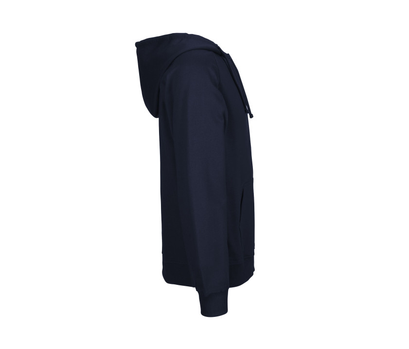 Intérieur brossé. Coupe décontractée. Capuche doublée. Cordon plat ajustable. Poche kangourou. Bords côte aux manches et à la taille. Bande de propreté au col. Fermeture zippée YKK. Sans étiquette de marque.