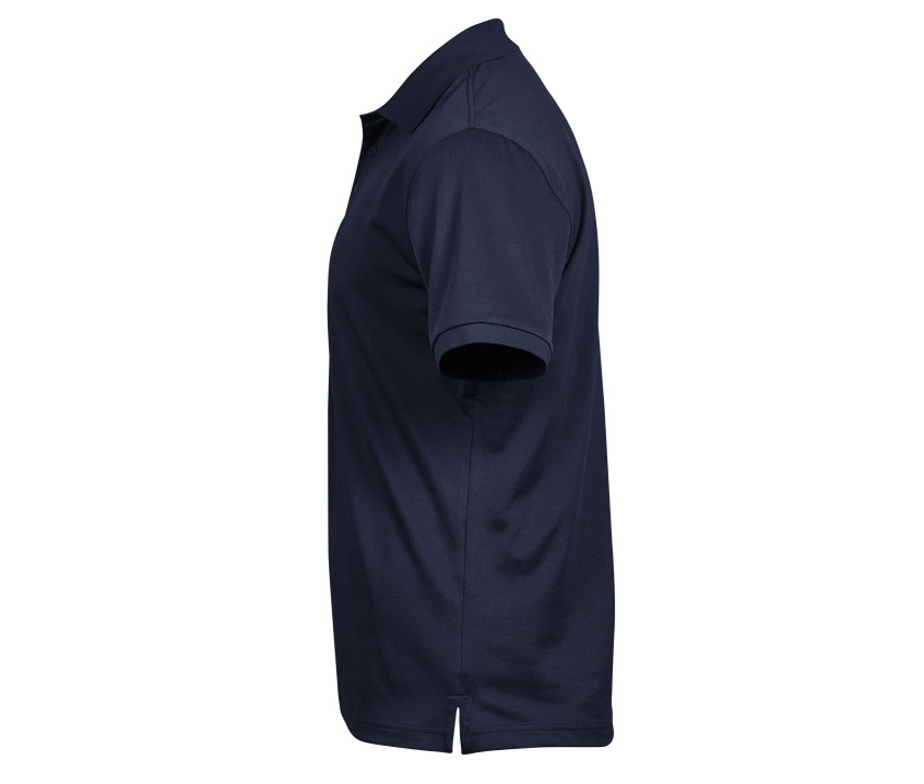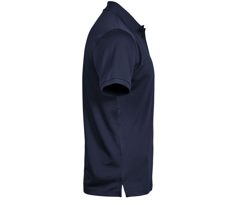 Coupe ajusté. Col plat en bords côte. Plaquette 3 boutons.