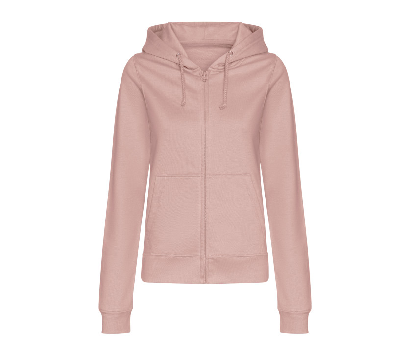 Sweat zippé femme - Fermeture zippée recouverte en plastique YKK. Capuche doublée. Cordon de serrage ton sur ton. Poche kangourou. Intérieur gratté.