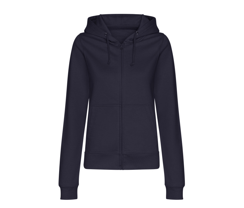 Sweat zippé femme - Fermeture zippée recouverte en plastique YKK. Capuche doublée. Cordon de serrage ton sur ton. Poche kangourou. Intérieur gratté.