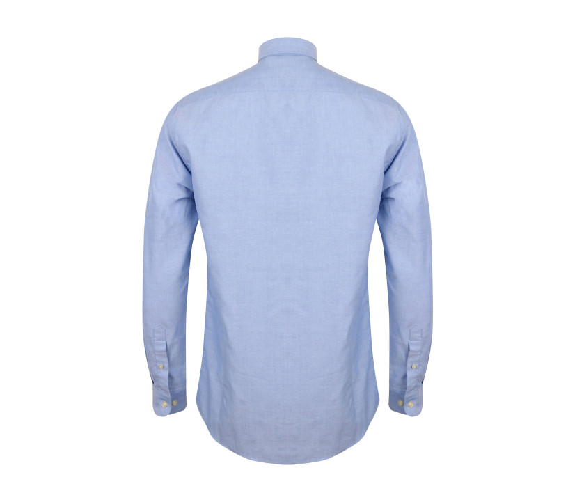 Coupe classique avec coutures latérales façonnées. Tissage Oxford léger, infroissable. Col court boutonné. Poignets réglables. Boutons perlés. Sans étiquette.