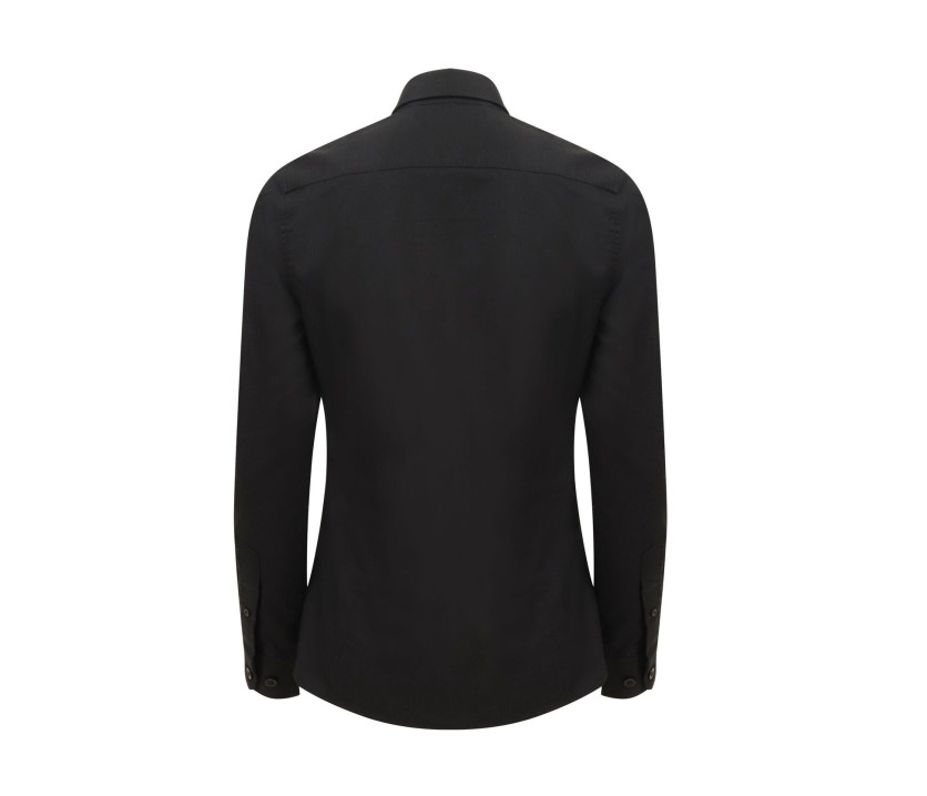 Coupe classique avec coutures latérales façonnées. Pinces avant et arrière. Tissage Oxford léger. Col court boutonné. Ne se froisse pas. Boutons perlés. Sans étiquette. Poignets réglables.