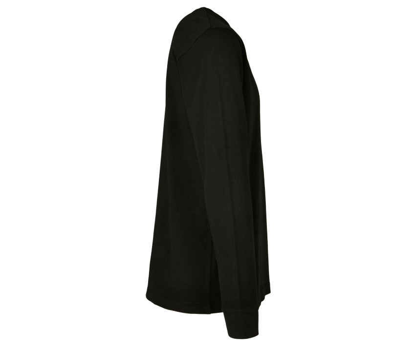 Puce de taille au col. Bande de propreté au col. Col rond ras-de-cou. Manches longues sportives. Coupe large et ample. Poignets larges.