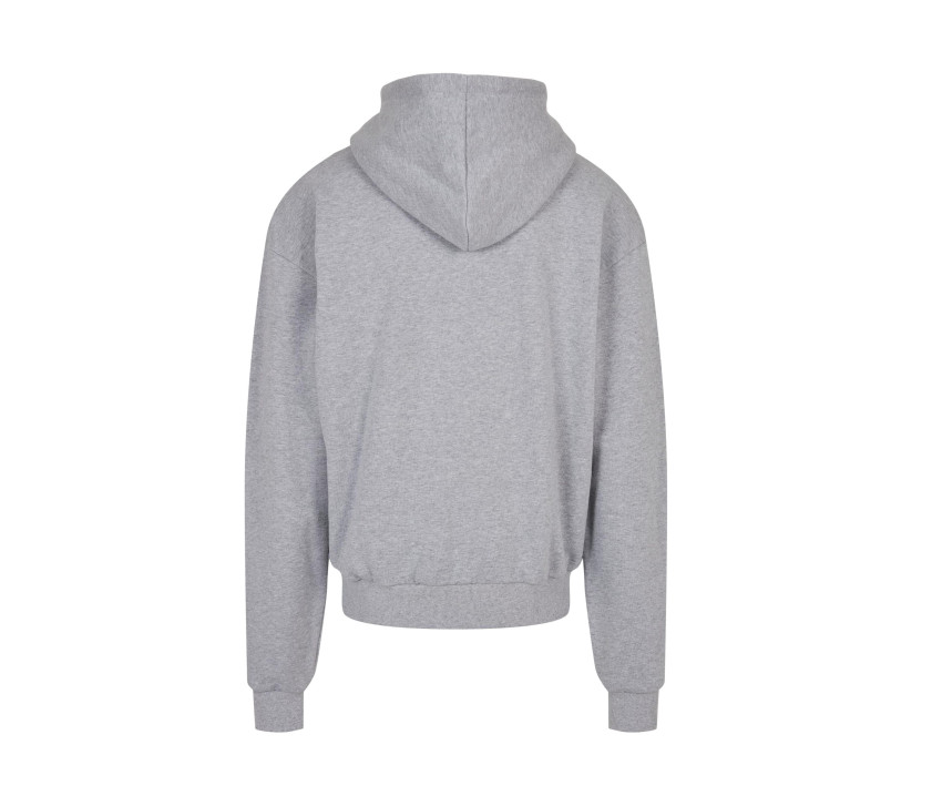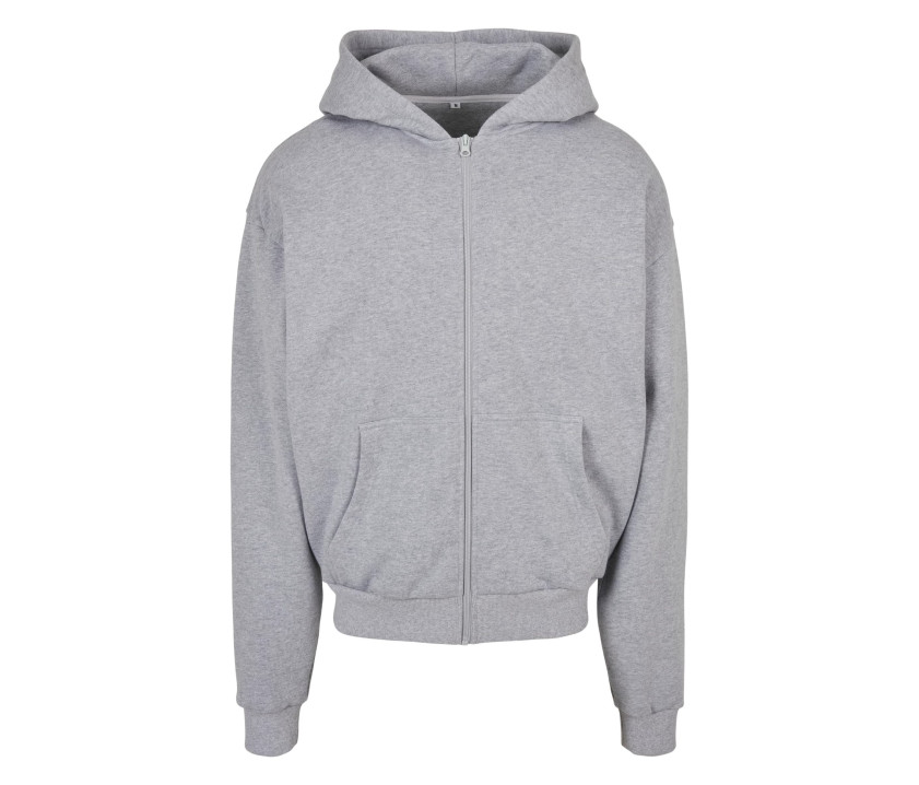 Fermeture grand zip métallique. Bords côte épais aux poignets et à la taille. Capuche classique mais sans cordon. Poches kangourou. Coupe large. Intérieur French Terry.
