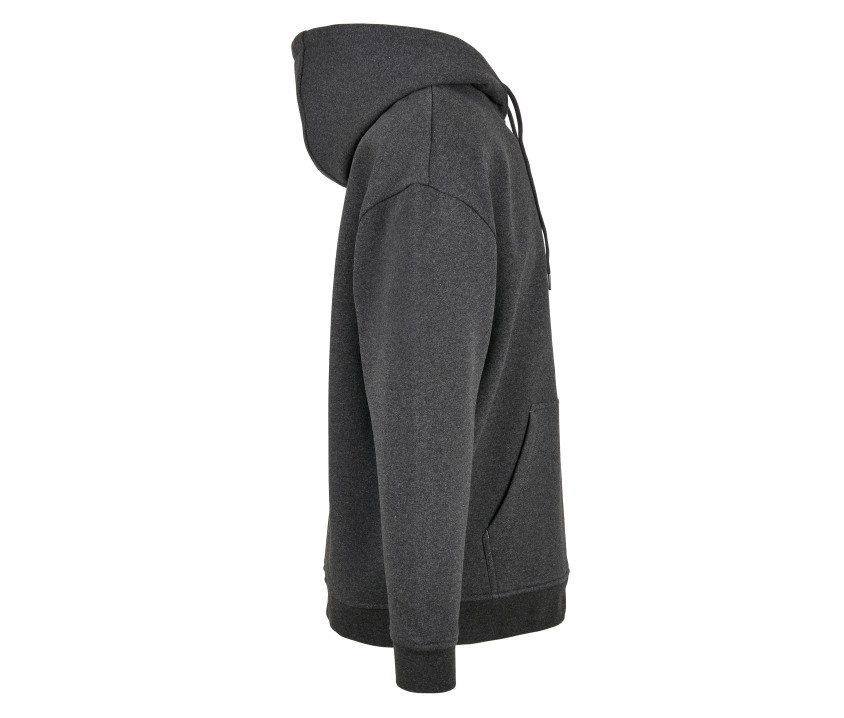 Coupe très ample. Manches droites. Capuche ajustable par cordons. Poche kangourou. Bord côte épais aux poignets et à la taille. Puce de taille au col.