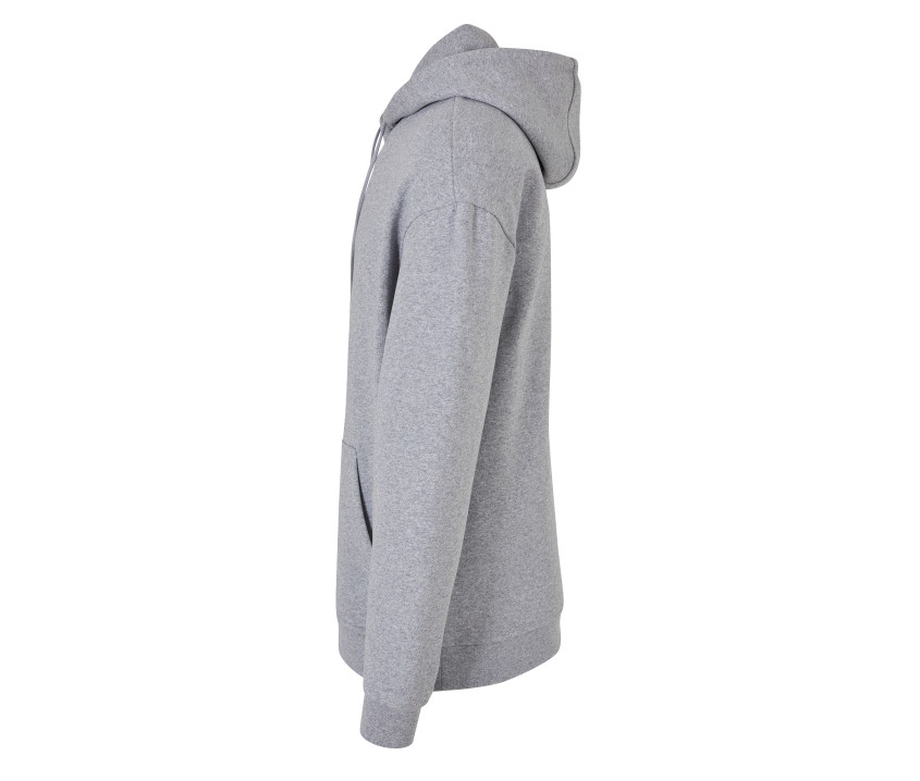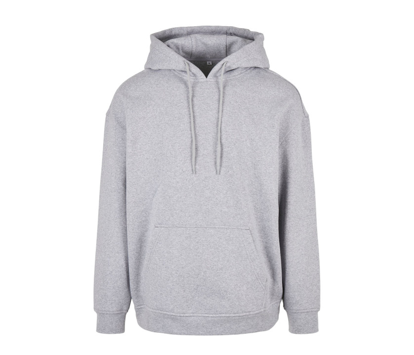 Coupe très ample. Manches droites. Capuche ajustable par cordons. Poche kangourou. Bord côte épais aux poignets et à la taille. Puce de taille au col.
