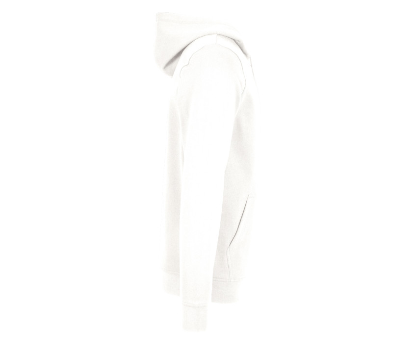 Manches droites. Capuche ajustable par cordons. Poches kangourou. Bord côte épais aux poignets et à la taille. Fermeture grand zip. Intérieur gratté. Puce de taille au col. Coupe classique.