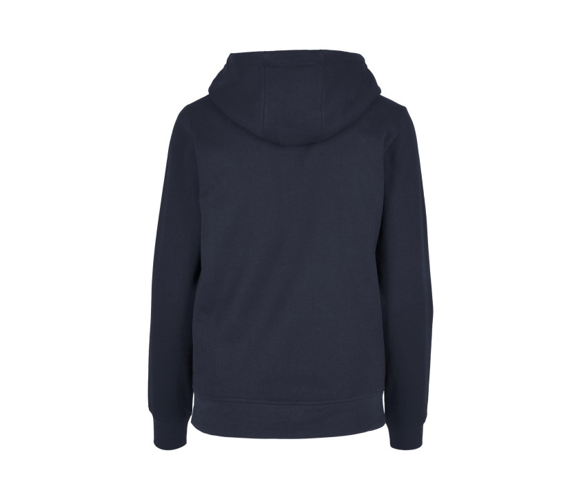 Manches droites. Capuche ajustable par cordons. Poches kangourou. Bord côte épais aux poignets et à la taille. Fermeture grand zip. Intérieur gratté. Puce de taille au col. Coupe classique.