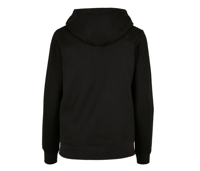 Manches droites. Capuche ajustable par cordons. Poches kangourou. Bord côte épais aux poignets et à la taille. Fermeture grand zip. Intérieur gratté. Puce de taille au col. Coupe classique.