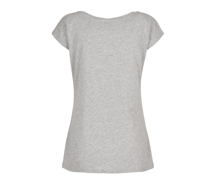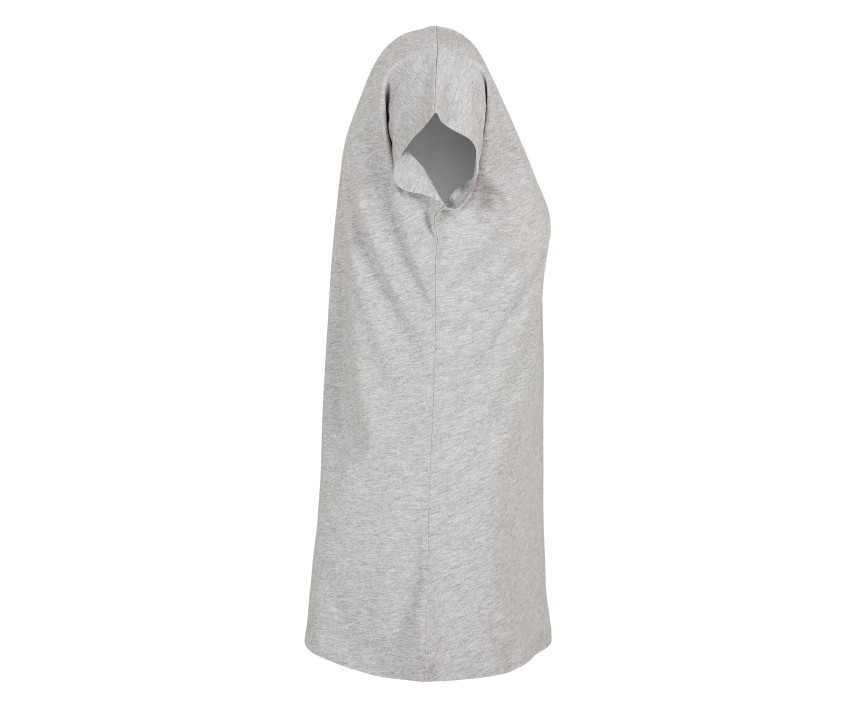 Coupe ample. Large encolure pouvant s'étirer sur une épaule. Bouts de manches retournés.