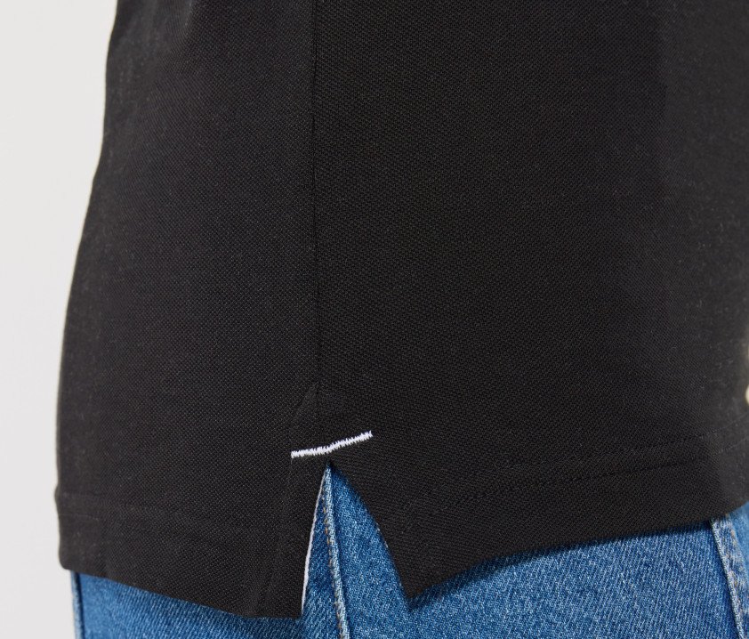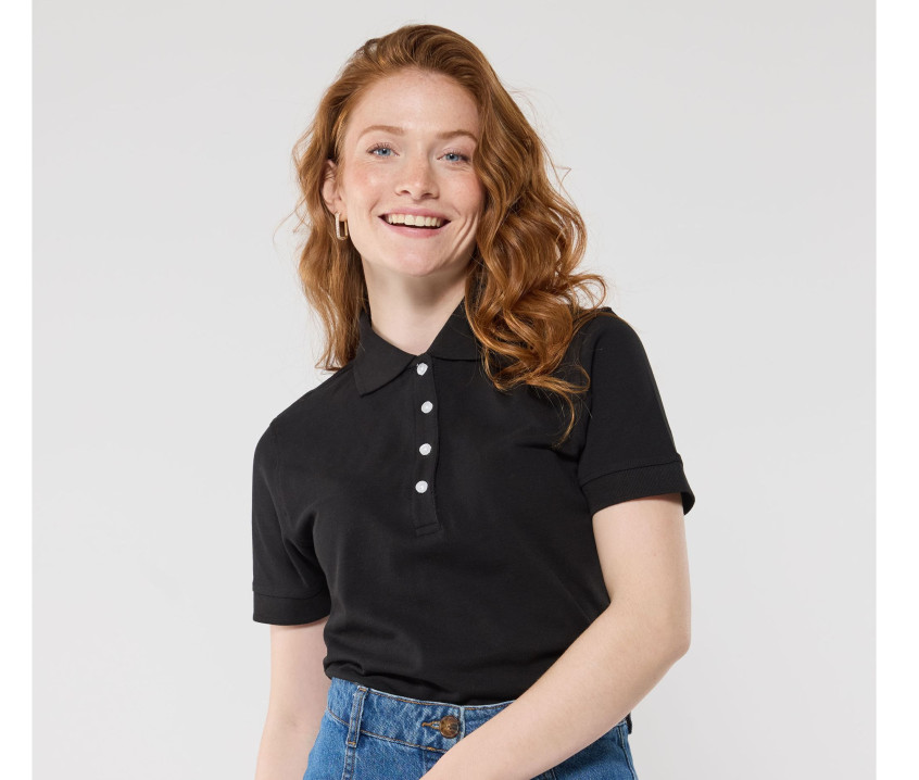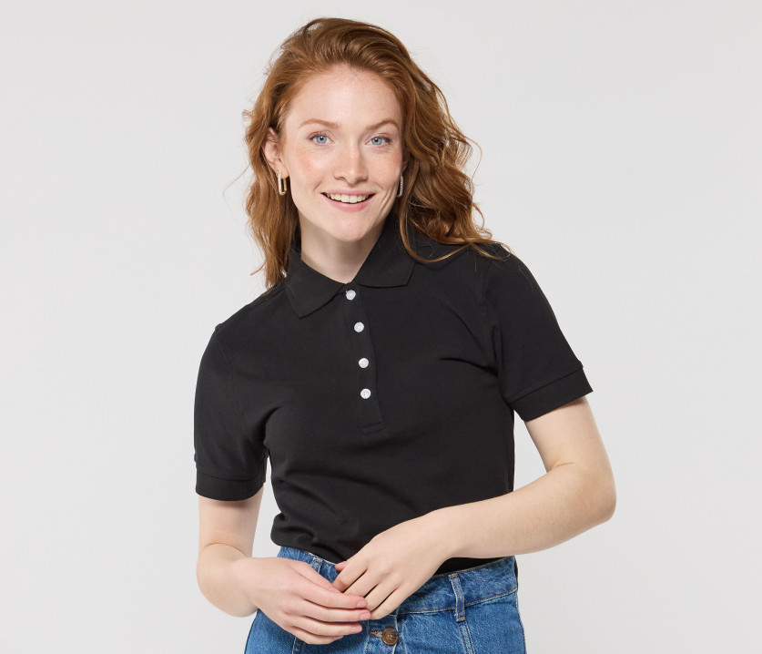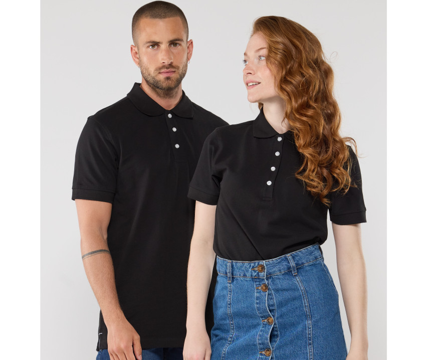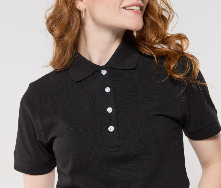 Bande de propreté contrastée au col. Bord côte aux manches et col. Plaquette 4 boutons. Boutons contrastés. Lavable à 60°.
