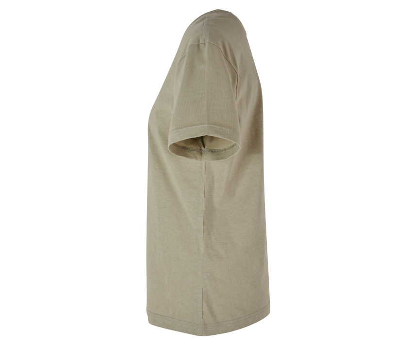 Coupe oversize décontractée. Épaules tombantes. Col ras-du-cou en bord côte. Sans étiquette de marque, uniquement une puce de taille.