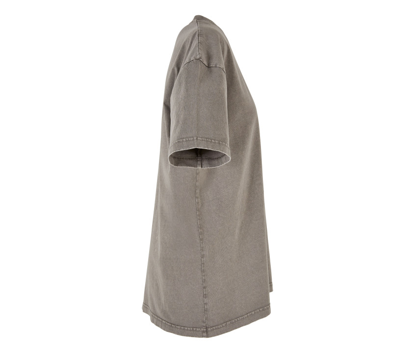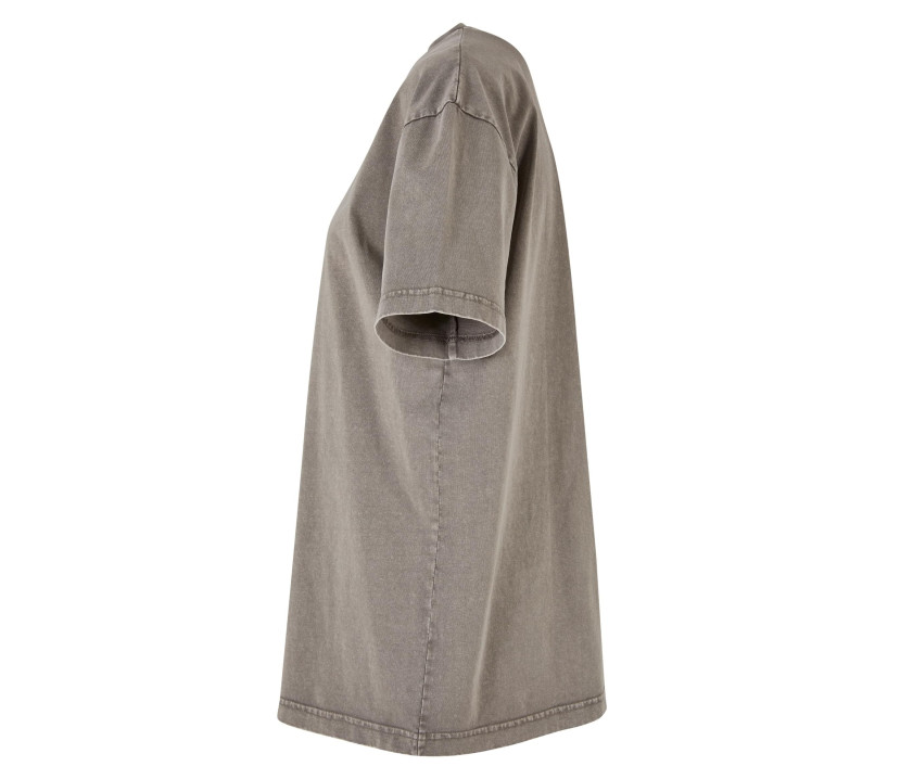 Épaules tombantes. Coupe ample. Tee-shirt décoloré à l'acide. Sans étiquette de marque, uniquement une puce de taille.