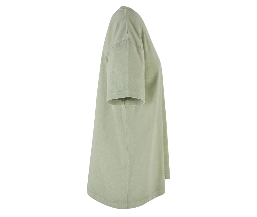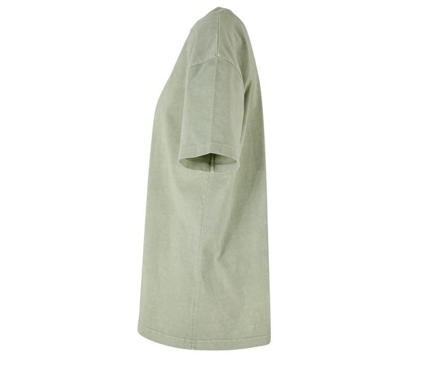 Épaules tombantes. Coupe ample. Tee-shirt décoloré à l'acide. Sans étiquette de marque, uniquement une puce de taille.