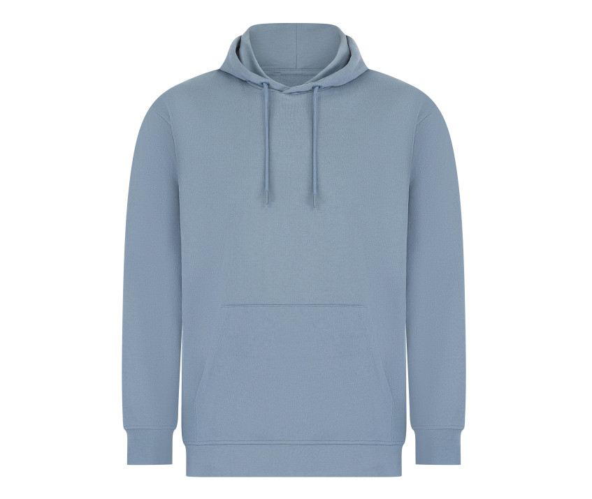 Manches droites. Épaules tombantes. Dos plus long. Taille et poignets en bord côte. Bande de propreté au col. Cordons de serrage ton sur ton. Poche kangourou. Surpiqûres ton sur ton. Intérieur brossé.