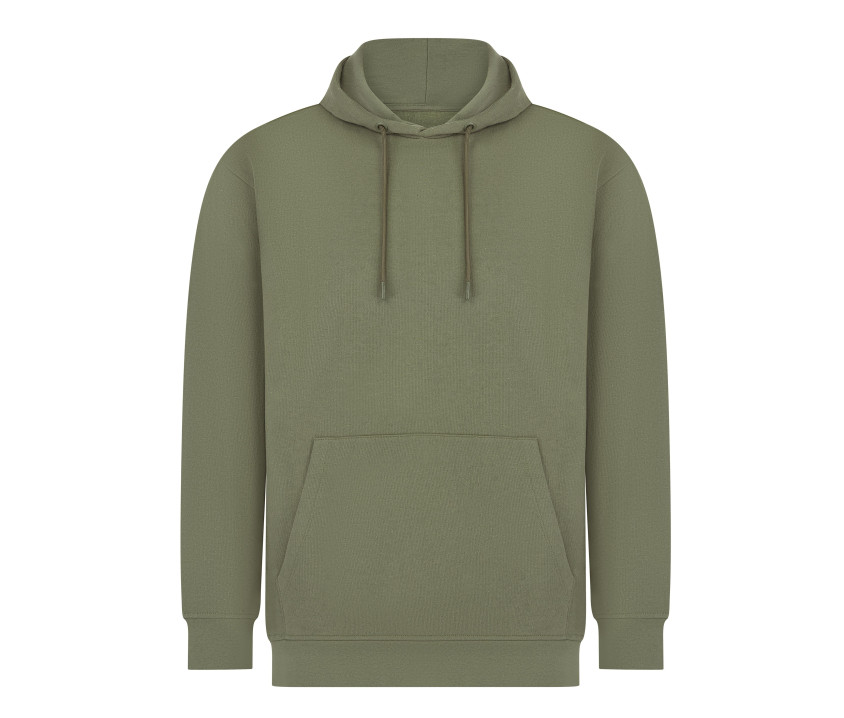 Manches droites. Épaules tombantes. Dos plus long. Taille et poignets en bord côte. Bande de propreté au col. Cordons de serrage ton sur ton. Poche kangourou. Surpiqûres ton sur ton. Intérieur brossé.
