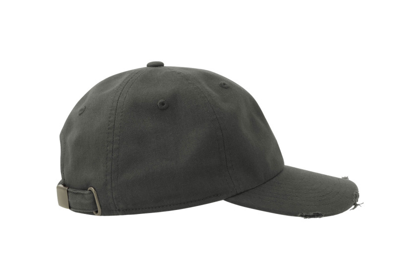 6 panneaux. Œillets surpiqués. Panneaux structurés. Fermeture par boucle. Coutures décoratives sur la visière. Visière préformée. Effet vieilli. Tour de tête : 58cm. Structure de la visière en plastique.