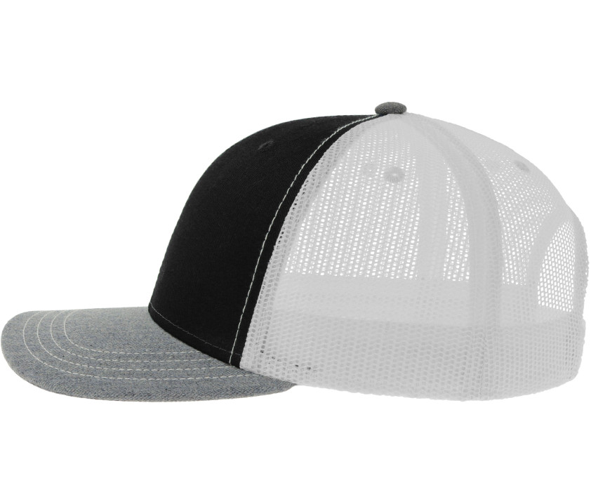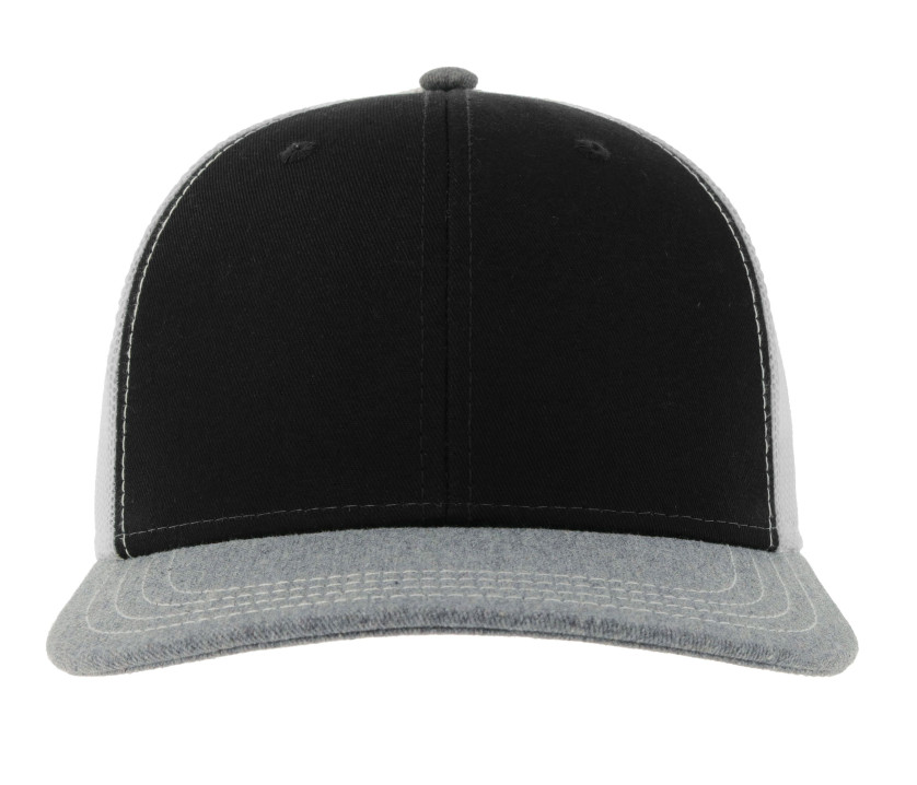 6 panneaux. Visière préformée. Fermeture par patte. Panneaux arrière et côtés en filet. Œillets surpiqués. Coutures décoratives sur la visière. Tour de tête : 58cm. Structure de la visière en plastique.