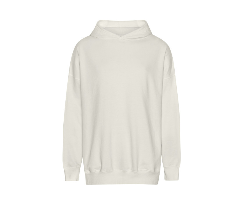 Épaules tombantes. Poignets et taille en bord côte. Intérieur brossé.