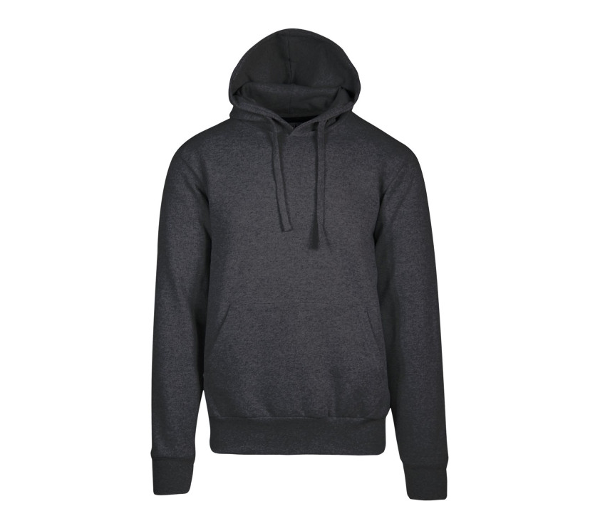 Poche kangourou. Taille et poignets en bord côte. Coupe tubulaire. Capuche doublée. Bande de propreté contrastée.