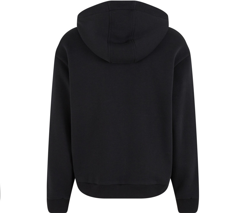 Coupe oversize. Épaules tombantes. Poche kangourou. Rib aux poignets et taille. Fermeture éclair en métal. Intérieur brossé.