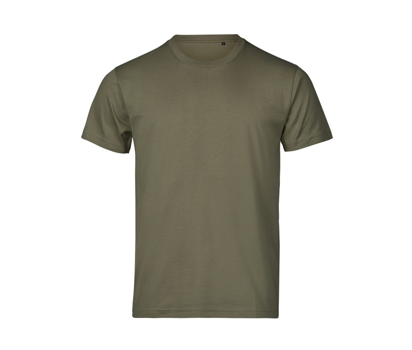 Coupe régulière. Bande de propreté d'épaule à épaule. Col double épaisseur avec élasthanne. Manches droites. Coton prérétréci deux fois.