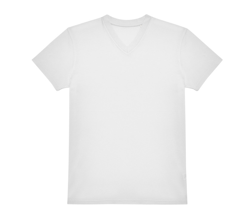 Coupe moderne. Coutures latérales. Col V. Bande de propreté au col. Matière résistante et douce.