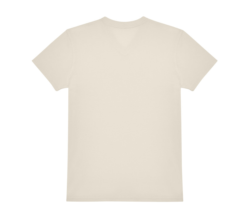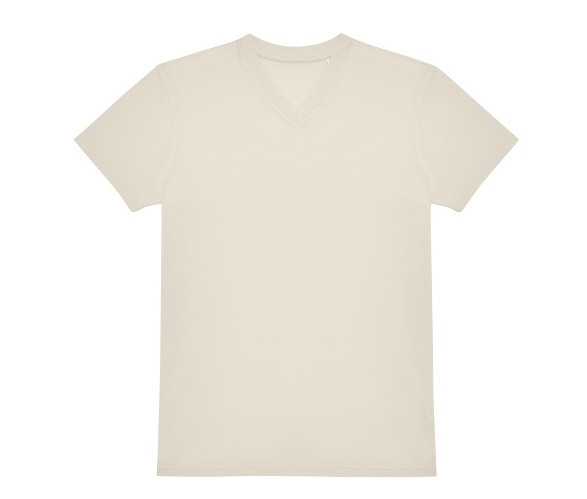 Coupe moderne. Coutures latérales. Col V. Bande de propreté au col. Matière résistante et douce.