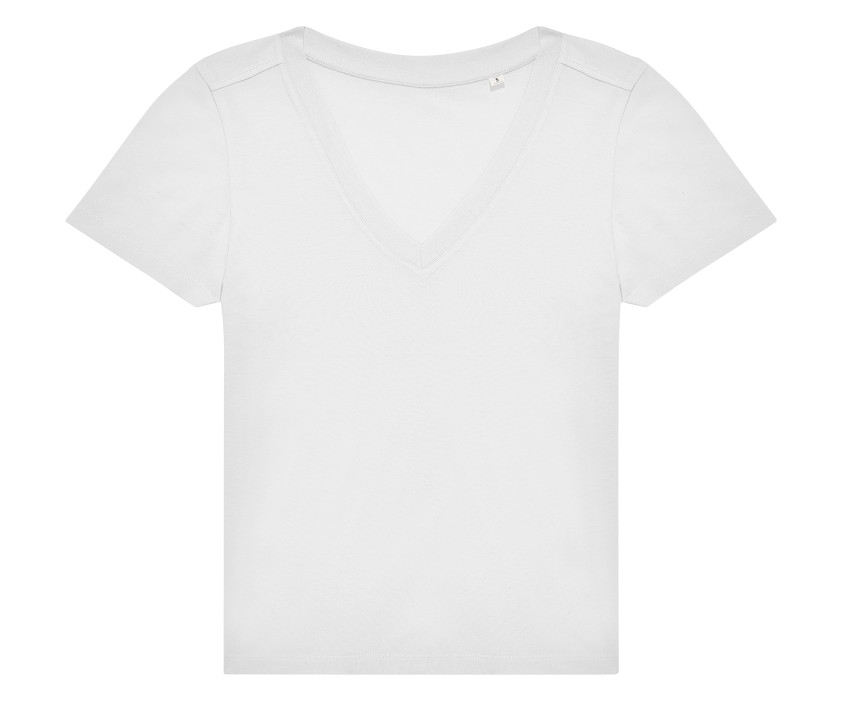 Coupe moderne. Coutures latérales. Col féminin en V. Bande de propreté au col. Matière résistante et douce.