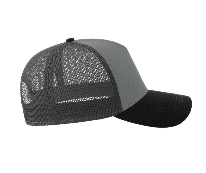 5 panneaux. Panneau avant et visière en coton. Filet à l'arrière. Panneau avant renforcé. Visière précourbée. 4 coutures sur la visière. Bandeau: 35% coton/65% polyester. Fermeture en pvc. Tour de tête : 58cm. Structure de la visière en plastique.