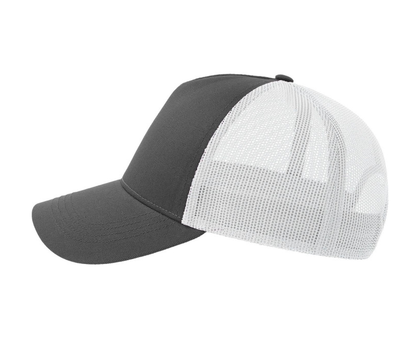 5 panneaux. Panneau avant et visière en coton. Filet à l'arrière. Panneau avant renforcé. Visière précourbée. 4 coutures sur la visière. Bandeau: 35% coton/65% polyester. Fermeture en pvc. Tour de tête : 58cm. Structure de la visière en plastique.