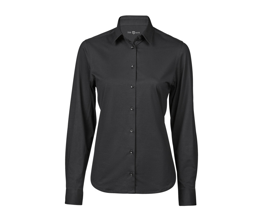 Coupe ajustée. Col large. Poignets de forme moderne. Empiècement au dos. Extensible dans les quatre sens. Séchage rapide.