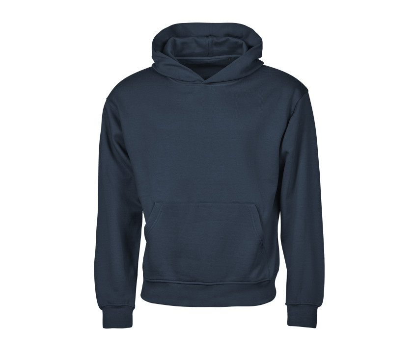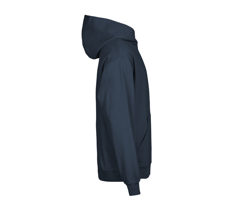 Coupe ample. Épaules tombantes. Rib avec élasthanne. Intérieur brossé. Demi-lune pour marquage personnalisé. Double teinture.