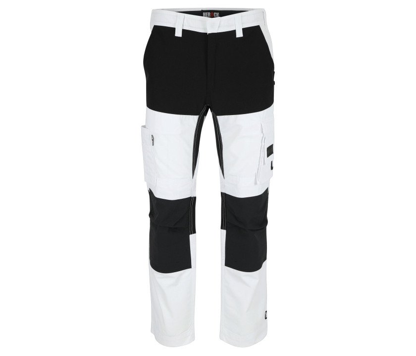 Pantalon multi-poches avec parties extensibles dans les 4 sens à l'entrejambe et aux genoux. 2 poches latérales. 1 poche téléphone. 2 poches sur les cuisses avec poches sur les jambes. 1 poche à mètre. 1 poche stylos. 2 poches arrière. Poches aux genoux en renfort Cordura®. 1 porte-badge. 1 boucle pour marteau. Ourlet à rallonge. Bouton recouvert.